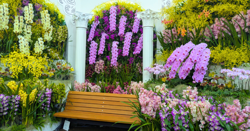 フォトスポットとして、蘭の花に囲まれて思わず時間を忘れてしまいます。